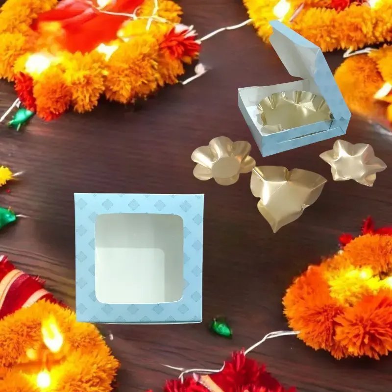 10 Pcs T-light Candle pvc box | T-light box | 3 Diya box | 3 Daisy box | Kaju katli box | Candle box pack of 10